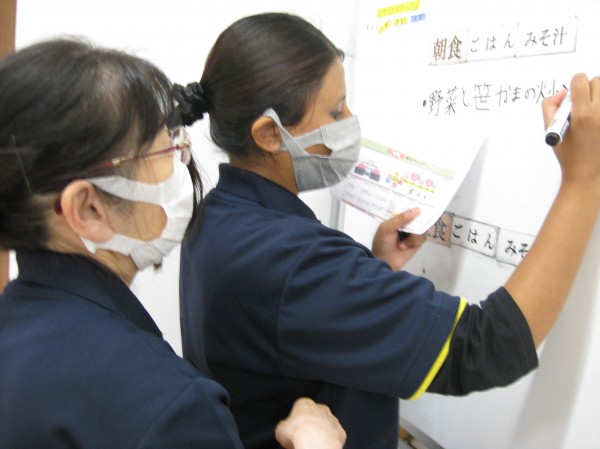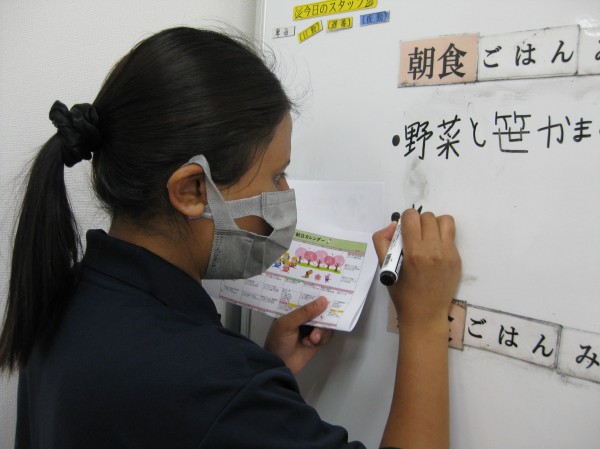 廊下を歩いて筋力維持されたりと転倒予防をしています! ある日のご様子、新聞をご覧になられているところです。 職員が献立を記入されているところです。 漢字を教えています! 日々書いていると綺麗に書けるようになりました。上手になりましたねとお伝えすると「ありがとうございます。」とにっこりされ嬉しそうでした( ^ω^)・・・