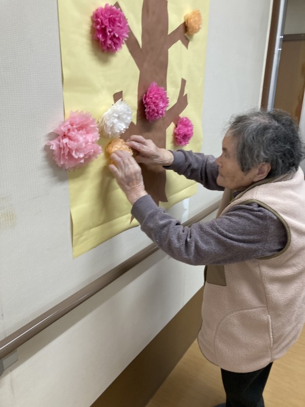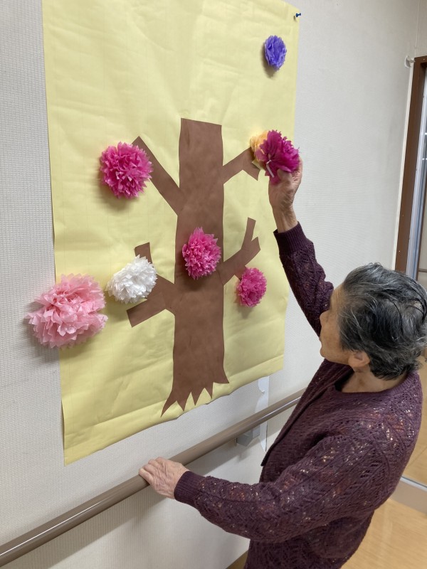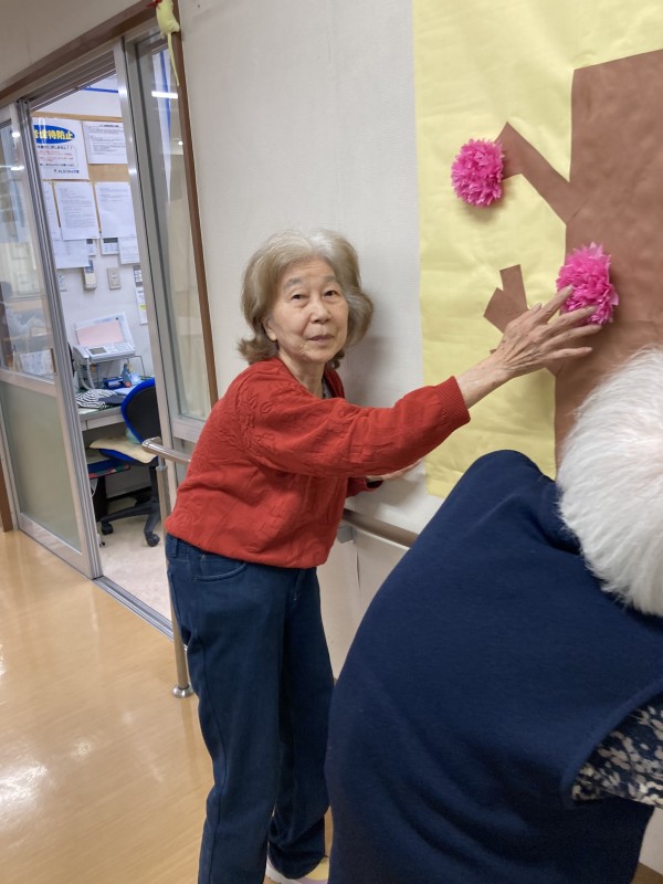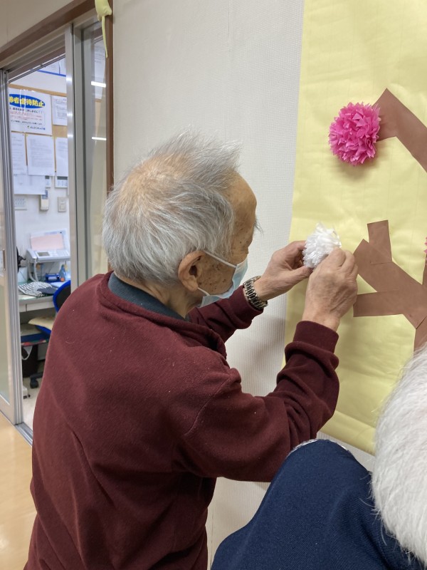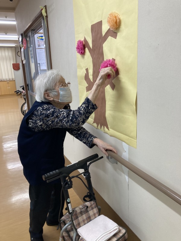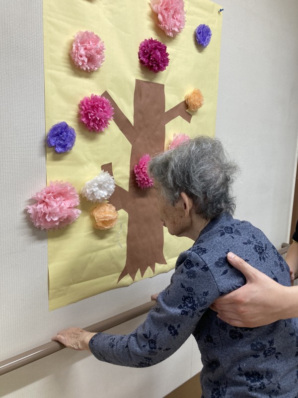今日は、お花見イベントでした!庭に出て皆さんでお花見おやつをいただく予定