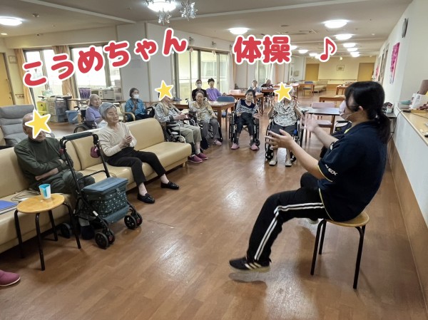 リビングでは、こうめケアスタッフが体操をしてくれています♪