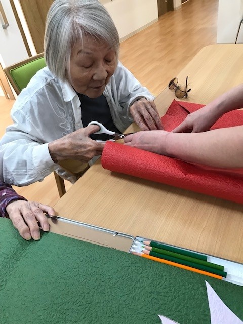 日々少しづつですが、来月の壁に飾る作品を職員と一緒に作っています。