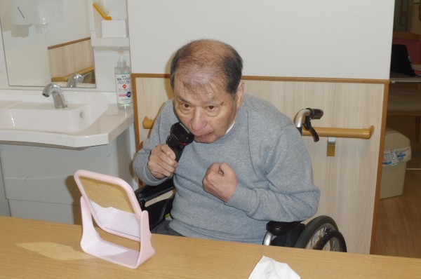 グループホームでは月1回、理美容の方が訪問されます。予約したご利用者様が伸びた髪をカットして貰います。