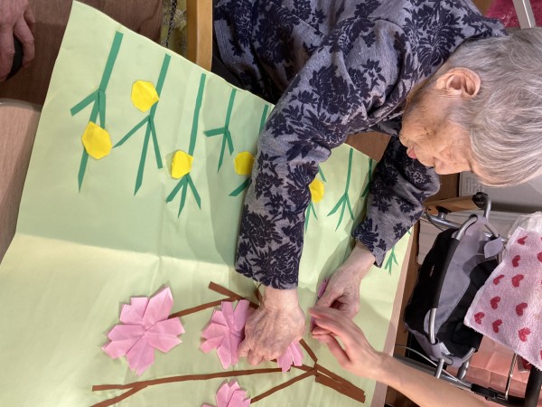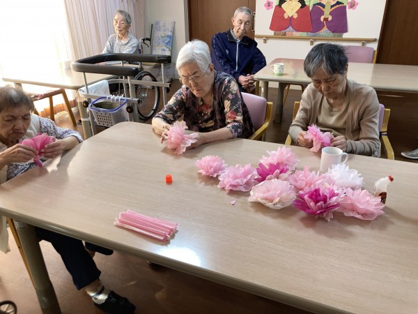 お花紙をじゃばらに折る作業は、指先を使うので“脳のトレーニング”にとてもよいです!!!