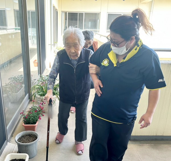 宮沢ケアスタッフが103様をエスコート。