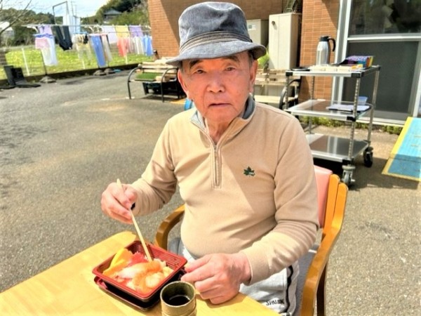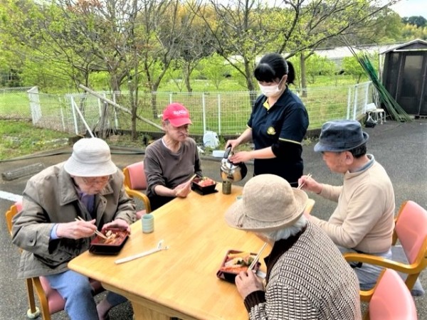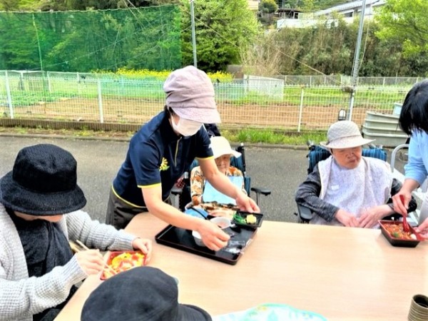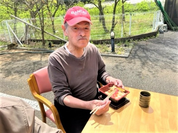 今年も『お花見弁当出前』を企画しましたが、日程が遅れ遅れになってしまい、ホームから見える唯一の桜の花も散ってしまいました。