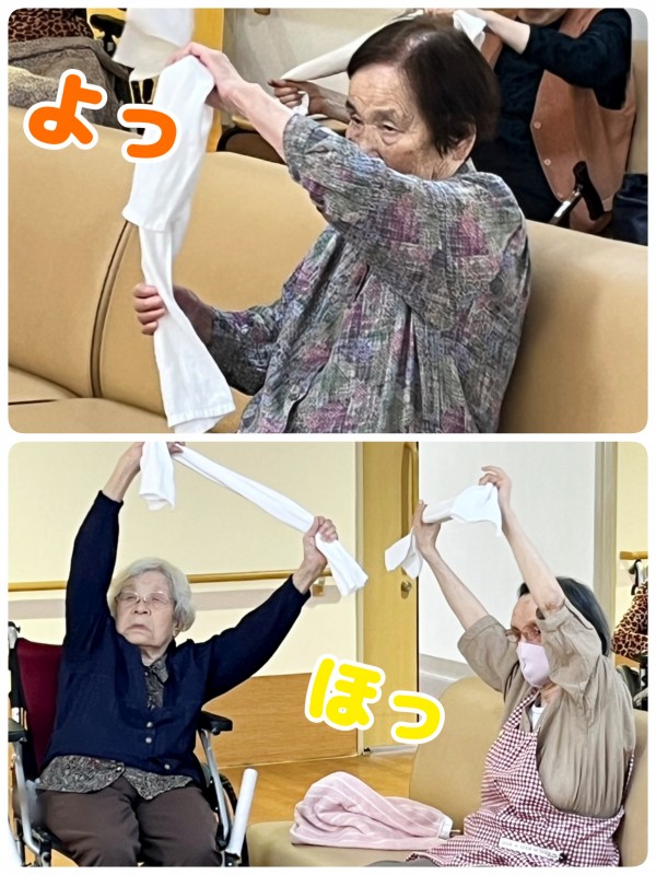 今日の体操はタオル体操♪