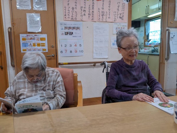 この日は(4月ですが)「クリスマスソングってウキウキするわね」というお言葉をきっかけに、クリスマスの歌を歌いました。