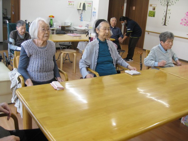 こんにちは! グループホームみんなの家・あきがせの介護ブログです! よろしくお願いいたします。 今日は日々のALSOK体操・口腔体操のご様子をお知らせいたします。