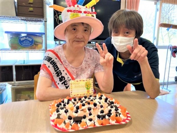 ご紹介が大分遅れてしまいましたが、横浜三保2では、お一人お一人の誕生日当日を大切に、手作りケーキとお赤飯を用意してお祝いしています。