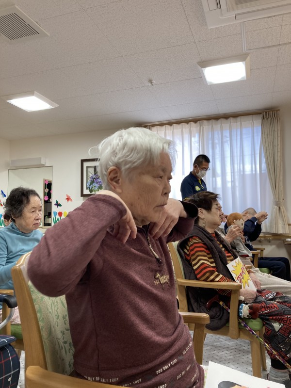 ホームでは日頃から口腔体操は行なっていますが、本日は初めてのヨガをリモートで体験することになりました♪