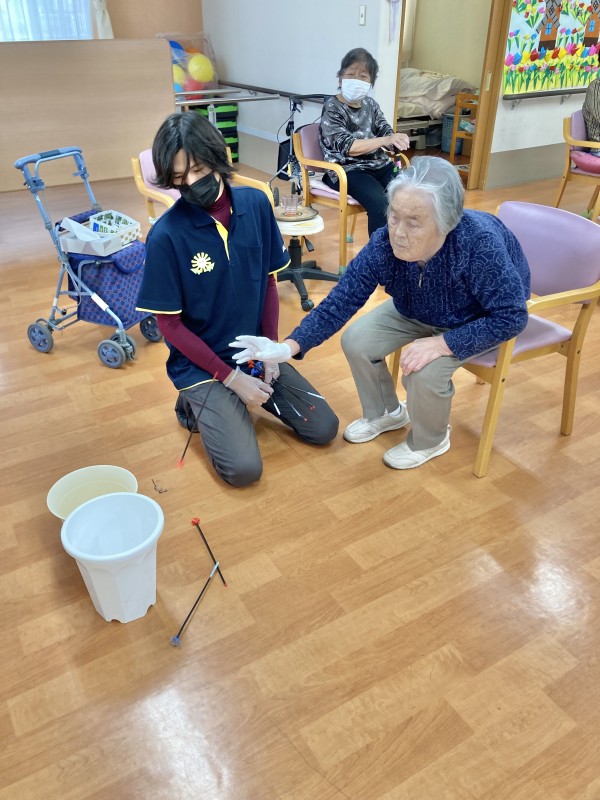 9本の矢を2回ずつ投げて、入った数で順位決め!