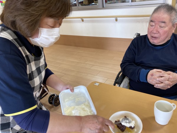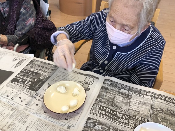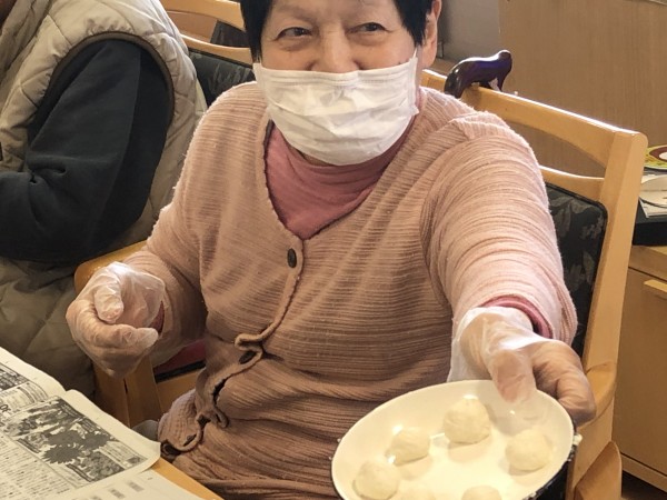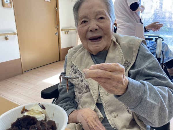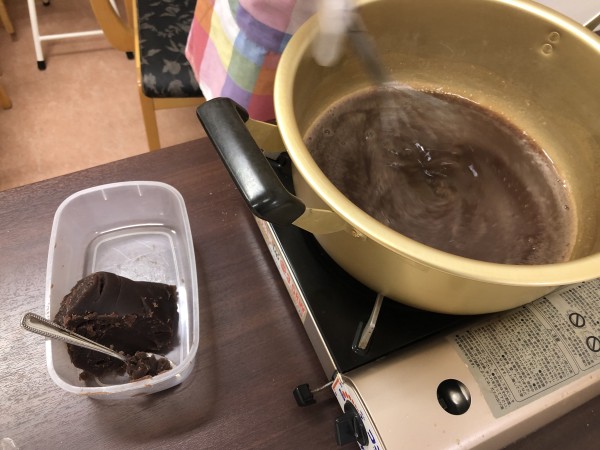 今回はおやつレクで白玉クリームあんみつを皆様で作ってみましたよ(^O^)/