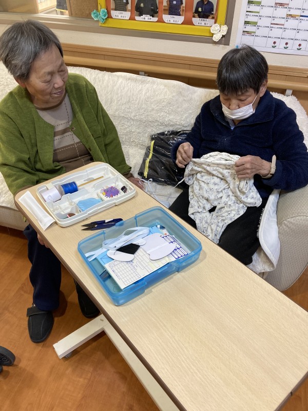 そしてこちらは19時頃…他の利用者様のズボンのゴムが切れてしまい、裁縫箱を出してゴムを通そうとしていたところ