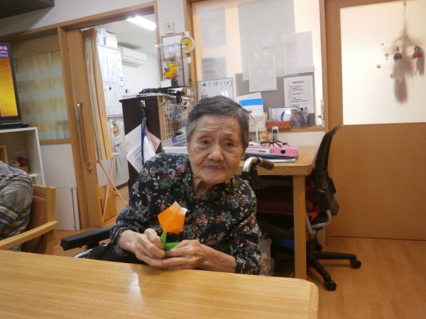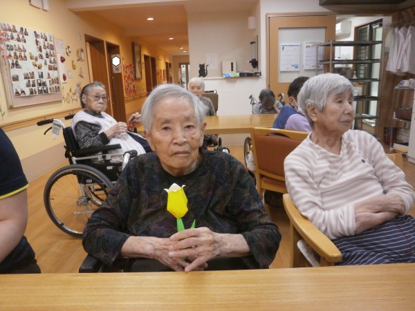 3. 春は色とりどりの花がきれいですよね。ホームでは職員が折り紙でチューリップを作りました。