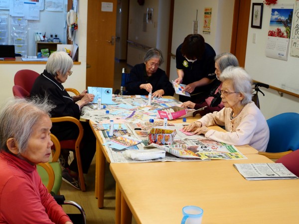 千代紙を切って作った『鱗』を糊で貼って頂きました。