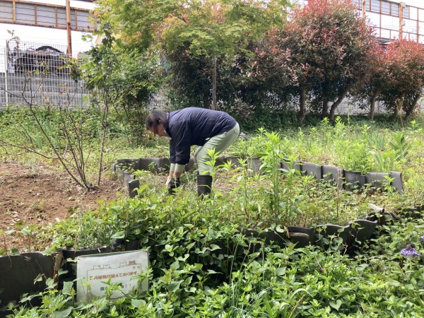 いつも熱心にお花の手入れをして下さってる職員さん。
