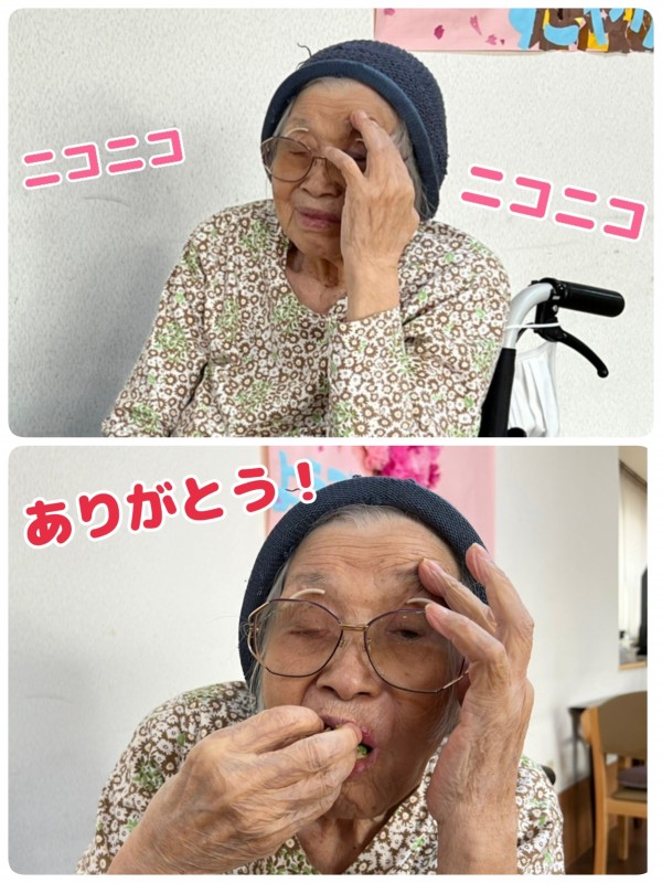 ケーキの主役が、本日の主役の奥様のお口にパクリ!
