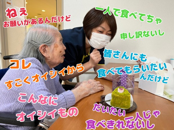 ケーキのトッピングのステキな桜は、本日の主役のおしゃべり番長様に。