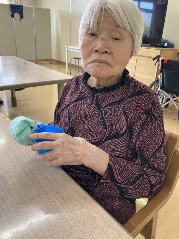 今日はコップ拭きのお手伝いをお願いしたところ、気持ちよく引き受けていただいた様子を