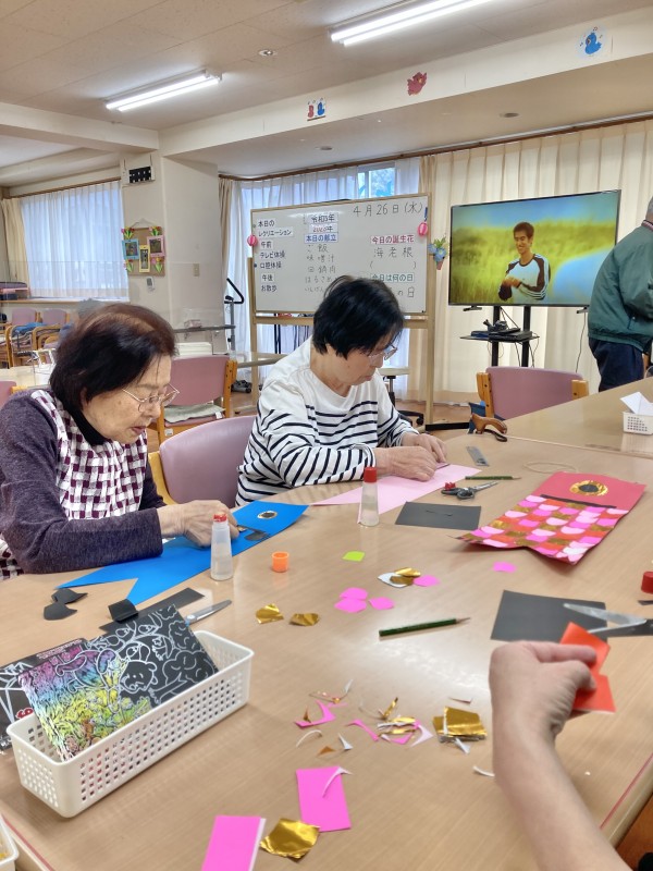 余暇活動の様子です。こいのぼりを作っていた様です。