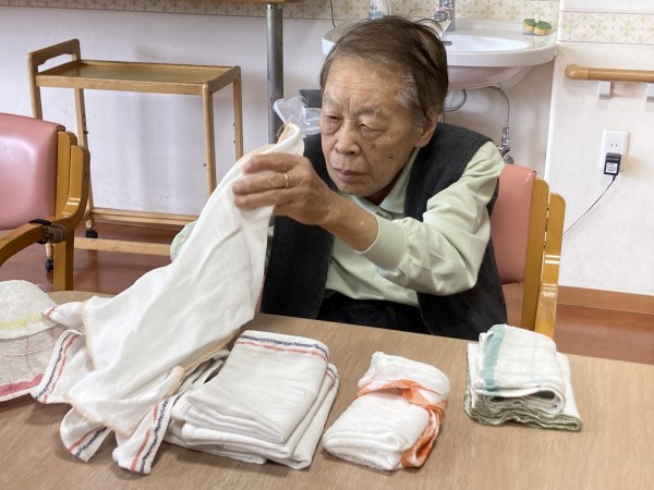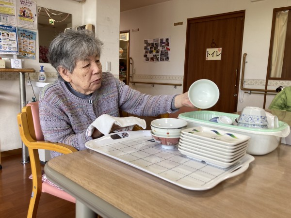 利用者様自ら「手伝いましょうか?」と仰って下さったり、職員からお願いしたりと色々ですが、できる事を手伝っていただくのもグループホームでの生活支援になり、毎日何かしら家事手伝いをして頂いています。