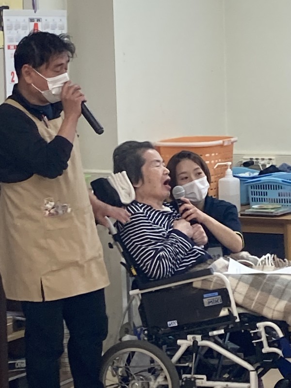 ほんとは座っているだけでも体力を使い疲労が色濃く出てしまうのですが、このカラオケコンサートを強く心待ちにしていた方なのです。
