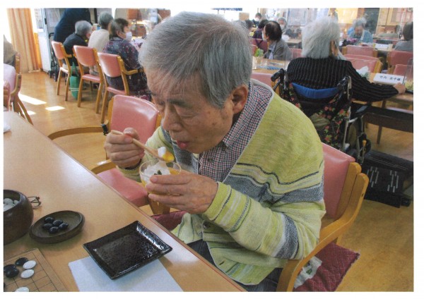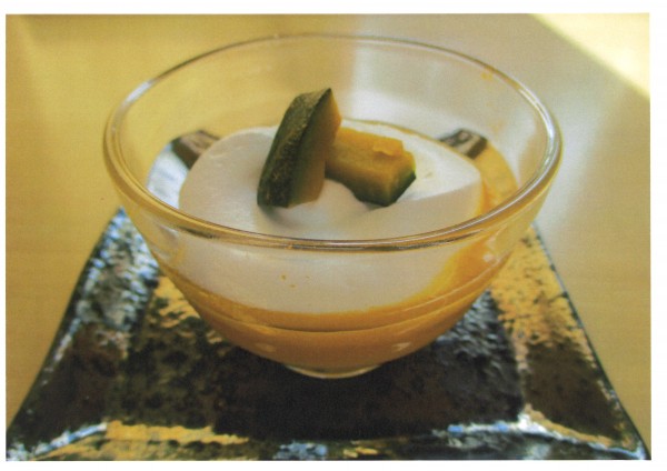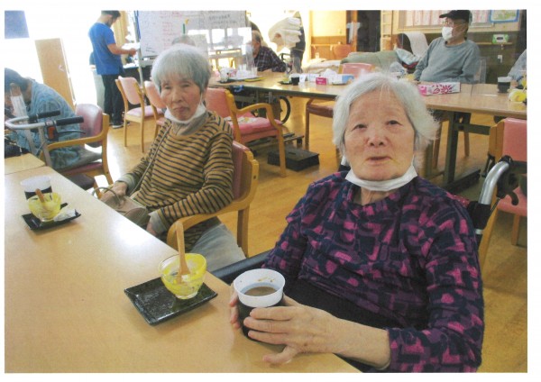 本日のおやつは【センター長の手作りおやつ】です。今回はかぼちゃを使ったおやつ。かぼちゃと豆乳、メープルシロップ等の糖分を加えミキサーでトロトロに。かぼちゃのお汁粉風。具材は角切りにしたかぼちゃ。トッピングはホイップとかぼちゃの皮です。甘さ控えめに仕上げました。今回も大変好評でした♪