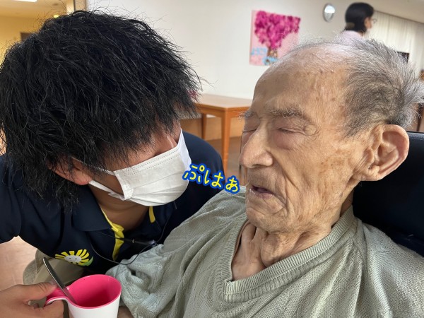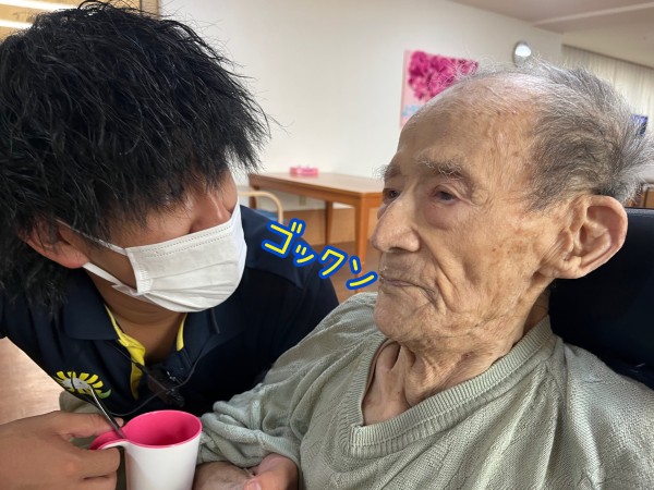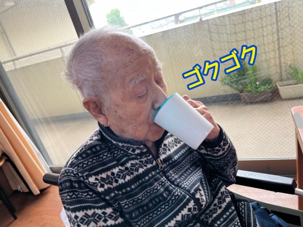 100%ジュースを飲む102歳様。