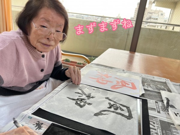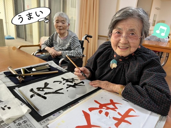 先日の書道レクリエーションに引き続き、またまた皆さま腕を揮います。