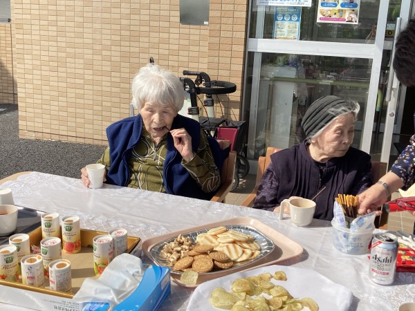 この日は天気が良かったので、施設の外でたくさんのお菓子を並べながら