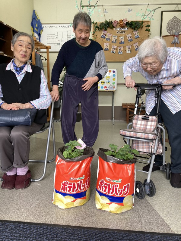皆さんでお水をあげて記念にパチリのこの一枚「じゃがいもにバターのっけておいしいよね!」