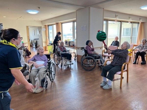 皆さま狙いを定めて飛んでくるビーチボールを、バスっと打ちます。