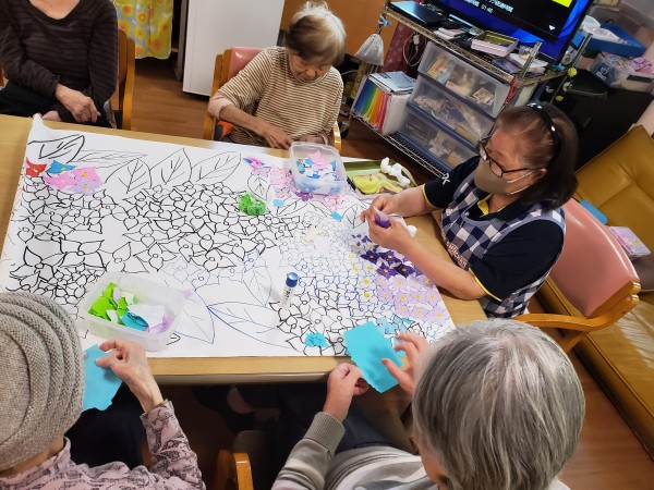 紫陽花のちぎり絵…絶賛制作中です(*^▽^*)