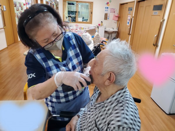 〇〇〇様、〇〇ケアスタッフに髭を剃っていただき、とても嬉しそう。