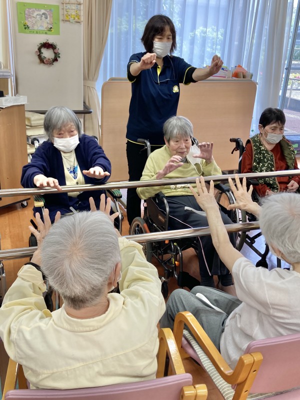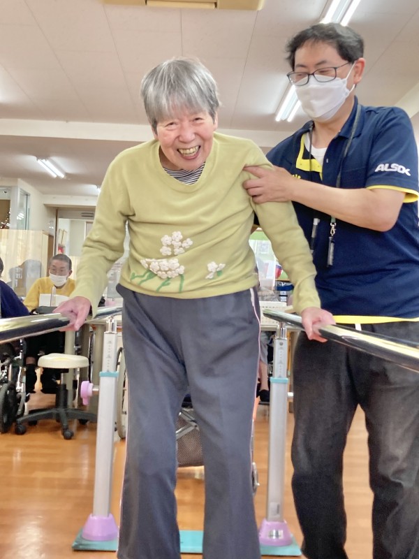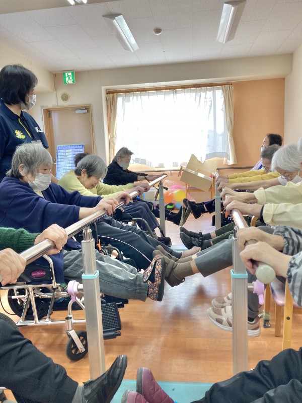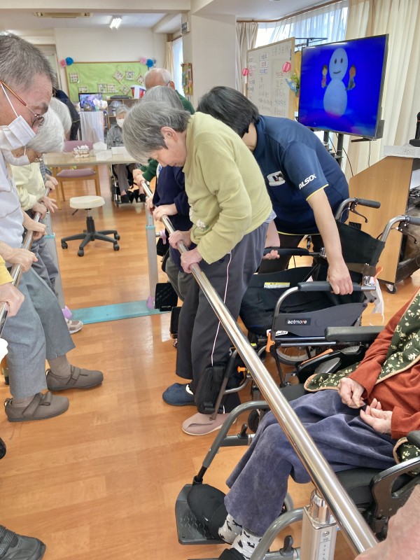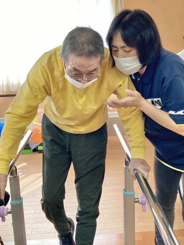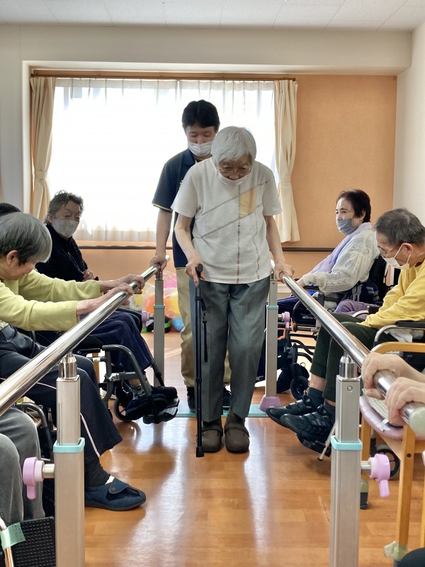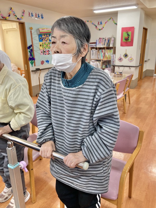 45分位、ゲームと運動をしてから最後に平行棒の間を歩ける方は歩いて、席へ戻られています。