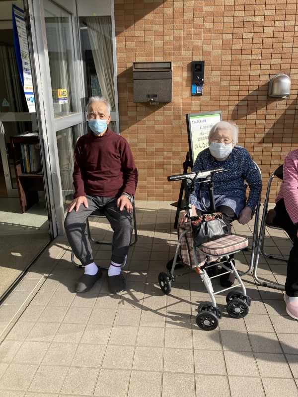 外気浴をしながら皆さんで歌をうたい、笑顔でお話をして