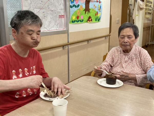 それに伴い手作りのバトンでホーム長引き継ぎ式を行い、その後みんなでケーキを頂きました。