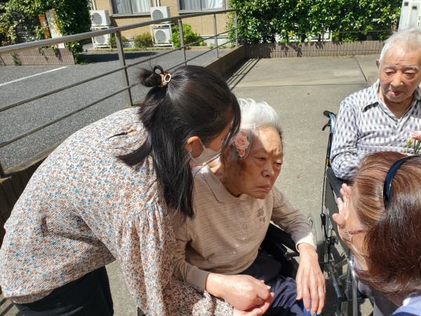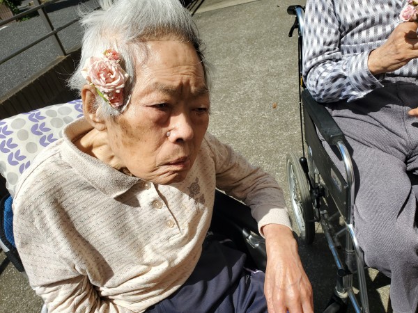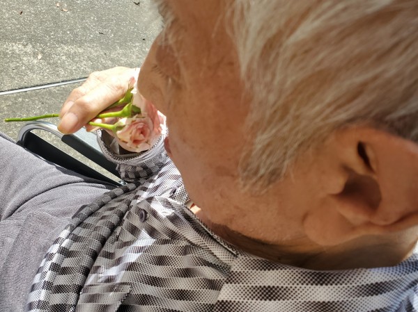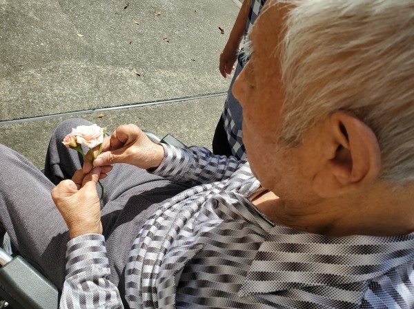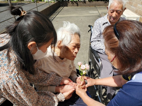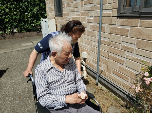 あたたかいこの日、お花が好きなお二人の利用者様と薔薇鑑賞をしました。
