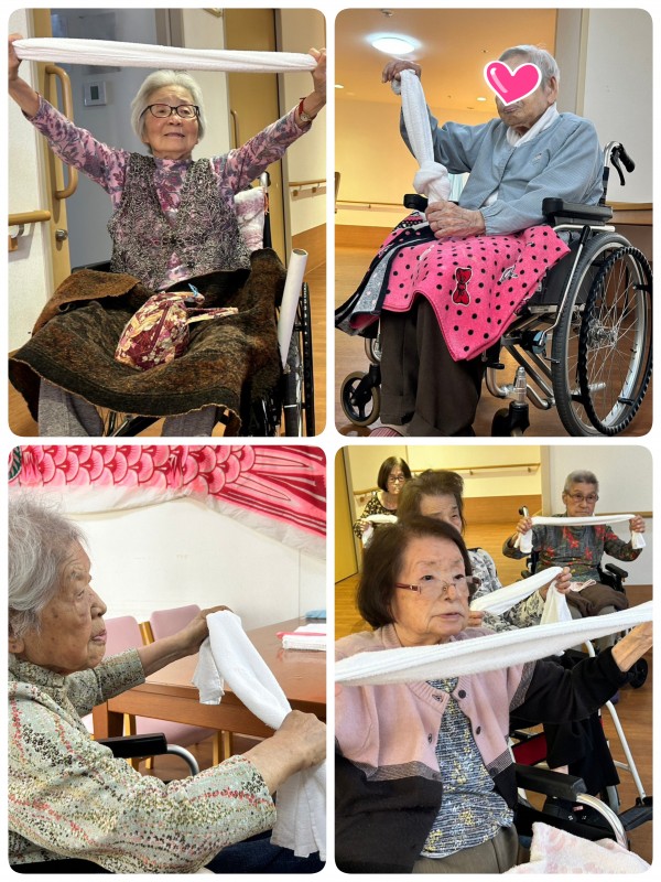 今回のリモート運動教室は、岡田先生のタオル体操!