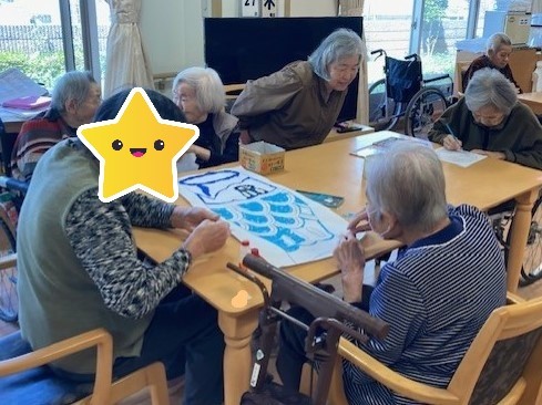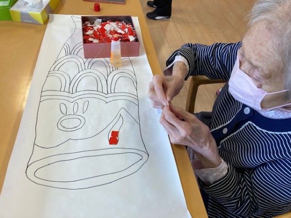 1階の入居者様でこいのぼりの貼り絵を作成しました!