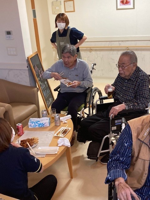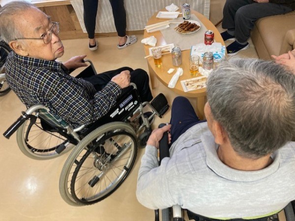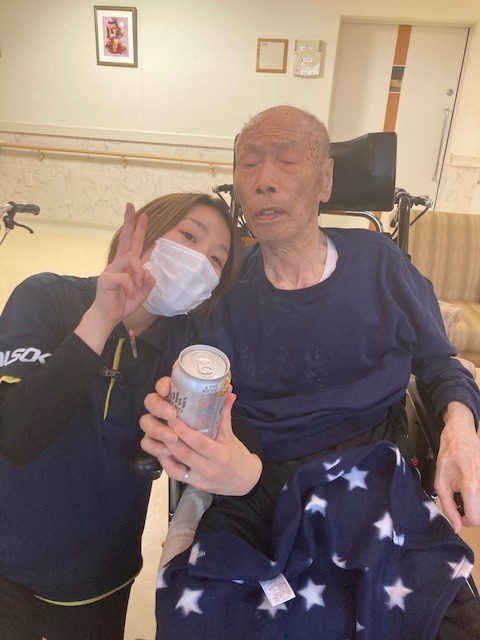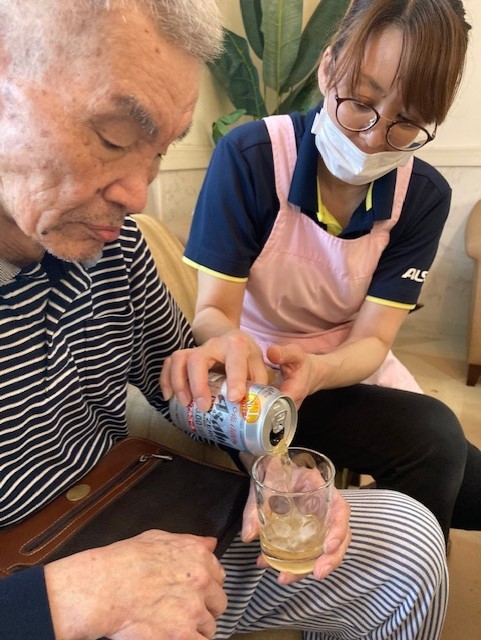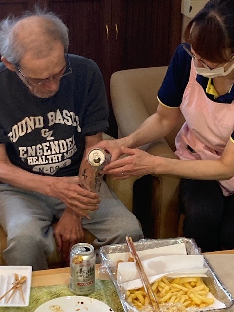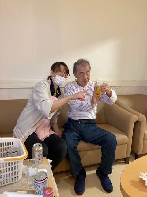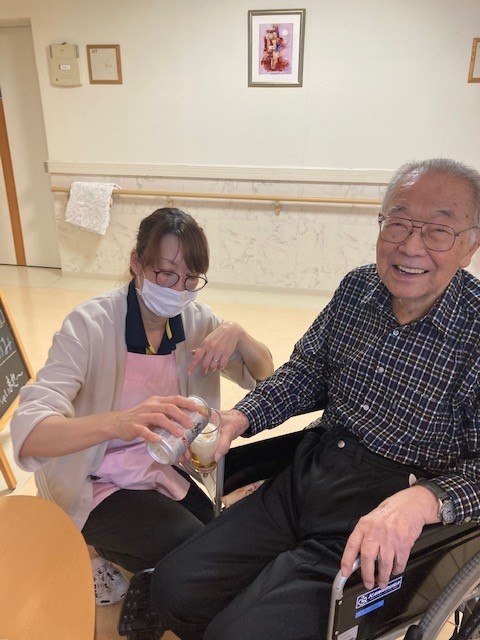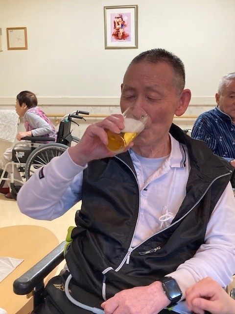 久々のビール(ノンアルコール)に感涙するご入居者様も…Σ(・ω・ノ)ノ!