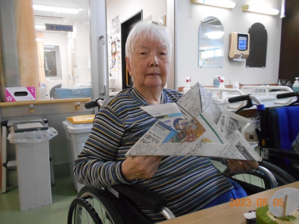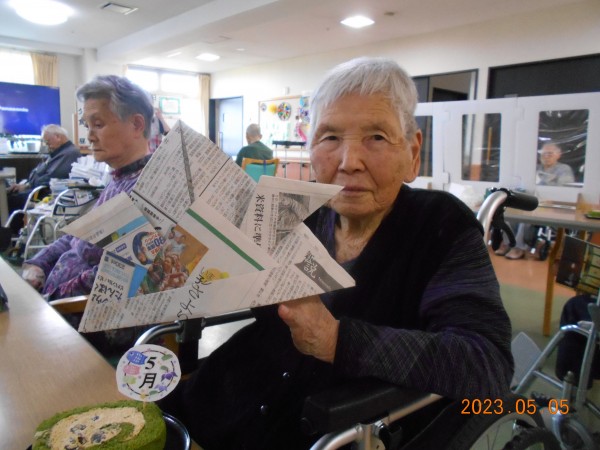 手作りかぶとを折って写真撮影☆彡