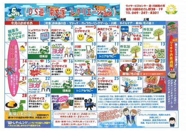 令和5年 5月の【レクリエーションカレンダー】をご紹介いたします。