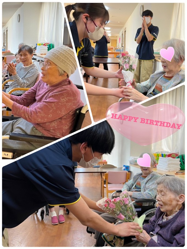 祝うご入居者様も、祝ってもらうご入居者様も、嬉しそうな表情が印象的です。