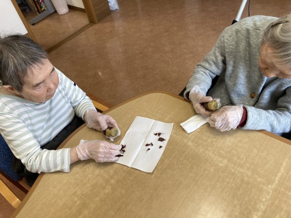 楽しそうにサツマイモの皮をむいてくださいました。