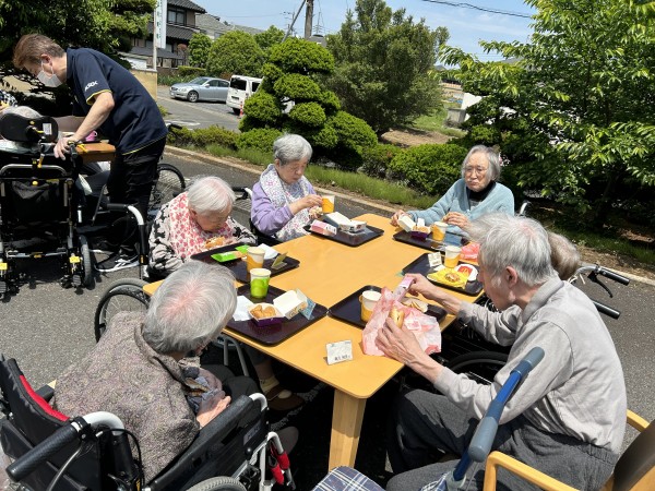 そんな訳で昨日の予告通りお外でランチを食べました。ちょっと暑いかな…と心配しましたが、爽やかな風が吹いて気持ちいい。