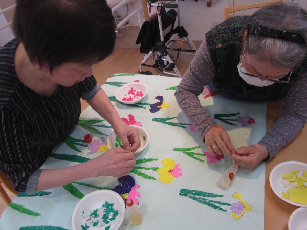 ★☆初夏の花「菖蒲(しょうぶ)」貼り絵レクリエーション2023年(^^♬ 『みんなの家・三橋6丁目・介護ブログ』☆★