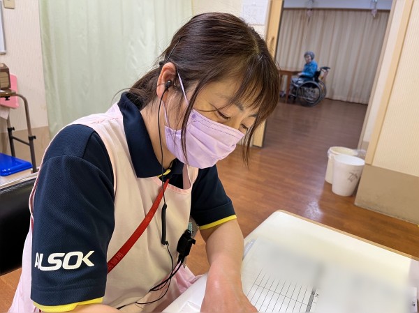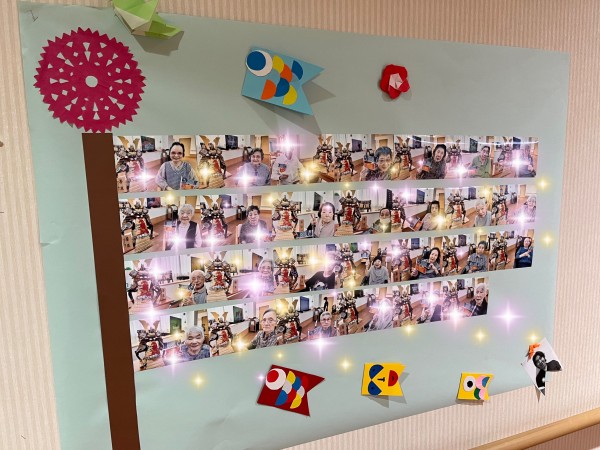 介護業務の合間に、イベント写真を飾ってくれる職員さん。
