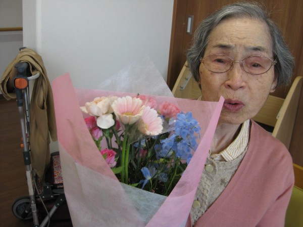 こんにちは! グループホームみんなの家・あきがせの介護ブログです! よろしくお願いいたします。 母の日にお花のプレゼントをお送りくださりました。そのご様子をお知らせいたします!