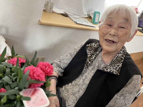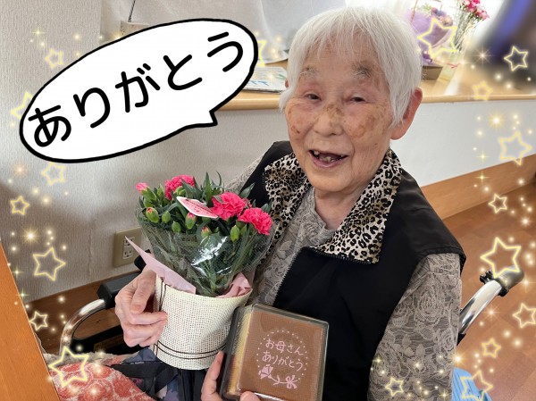 お母さん、ありがとうのプレゼントにとびきりの笑顔で「ありがとう」