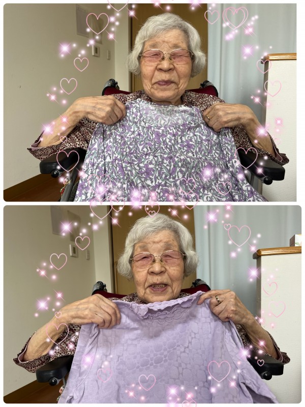 「あら、藤色だね。キレイな色だ」と体にあてて見せてくださいます。
